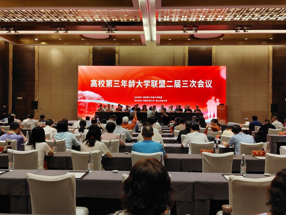 本网讯(老年大学)10月12日至14日,全国高校“第三年龄大学联盟”二届三次会议在黄山市隆重举行,校领导张智清应邀带队参会。会上,我校老年大学选送的《安徽文化研学》自编教材喜获优秀教材评选一等奖,并被增选为联盟常务理事单位。