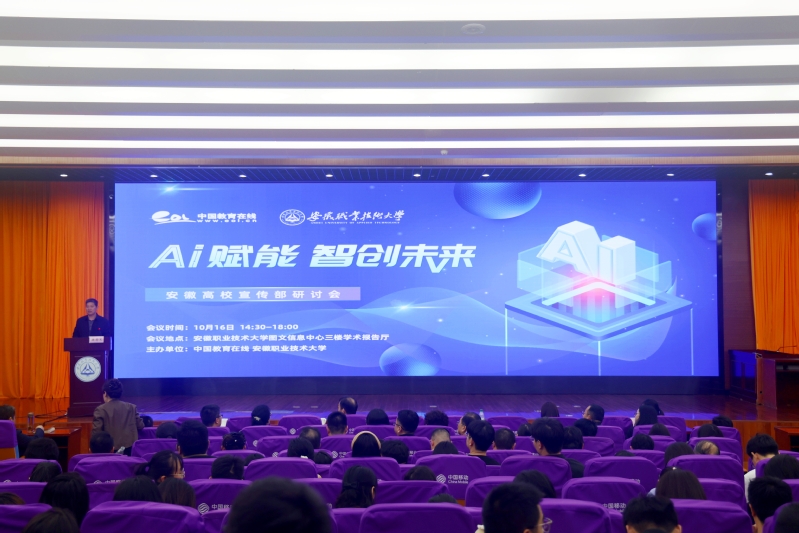 本网讯(党委宣传部)10月16日下午,由安徽职业技术大学和中国教育在线联合主办的全省高校宣传部研讨会暨学校新闻传播及舆情处置技能提升培训会顺利召开。省教育厅思政处副处长徐波,学校党委负责人李方泽,校领导杨林国,中国科学技术大学、合肥工业大学等近50所高校宣传工作相关负责人,学校全体中层干部、辅导员共计400余人参会。会议邀请了中国教育在线总编辑陈志文、上海交通大学党委宣传部新媒体主任金雪,围绕融媒体与智能时代高校宣传工作创新路径深入研讨,为安徽高校宣传思想文化工作高质量发展凝聚智慧。会议由杨林国主持。