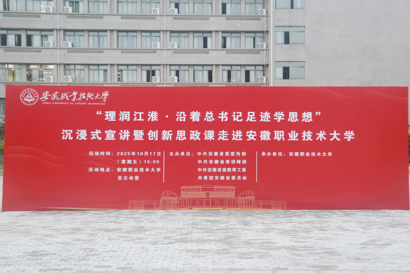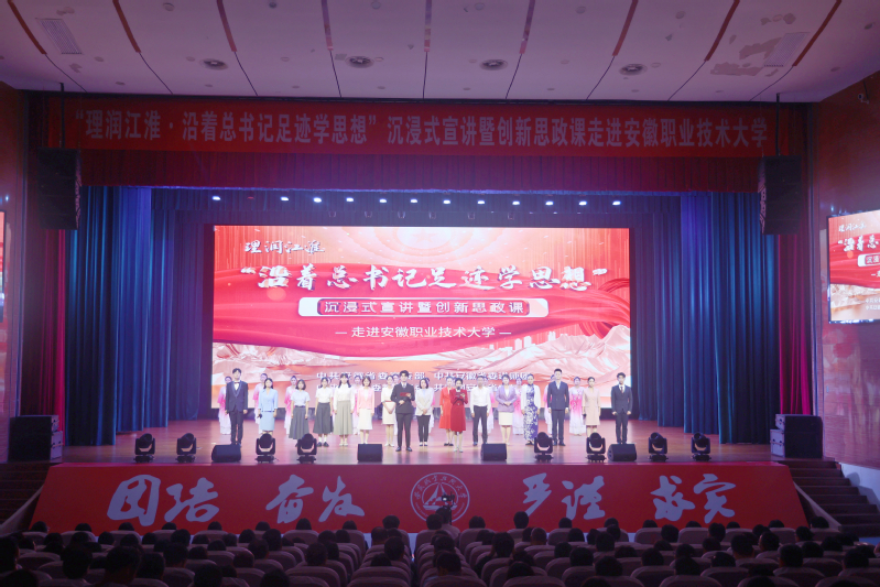本网讯(党委宣传部)10月17日,“理润江淮•沿着总书记足迹学思想”沉浸式宣讲暨创新思政课走进安徽职业技术大学。省委讲师团团长张彪,团省委副书记陈娟娟,省教育厅二级巡视员周晓芹,学校党委负责人李方泽,省委宣传部、省委讲师团、省教育厅、团省委等处室负责人出席活动,来自合肥、安庆、阜阳、马鞍山等多地的青年宣讲员,我校领导班子成员,全体中层干部,全体思政课教师及学生代表近800人参加活动。