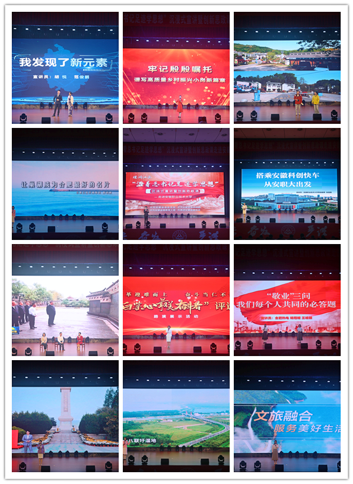 本次宣讲紧紧围绕习近平总书记考察安徽重要讲话精神,从“下好创新先手棋”“勇立潮头开新篇”“城乡融合绘宏图”“诗与远方交响曲”“人生能有几回搏”五个方面,通过相声、情景剧、微访谈等喜闻乐见的形式,向广大师生诠释了总书记考察安徽重要讲话精神和全省广大党员干部群众贯彻落实的生动实践,带领师生深刻感悟思想的真理力量和实践伟力,让党的创新理论“声”入人心,真正实现了宣讲内容“沾泥土、带露珠、冒热气”。