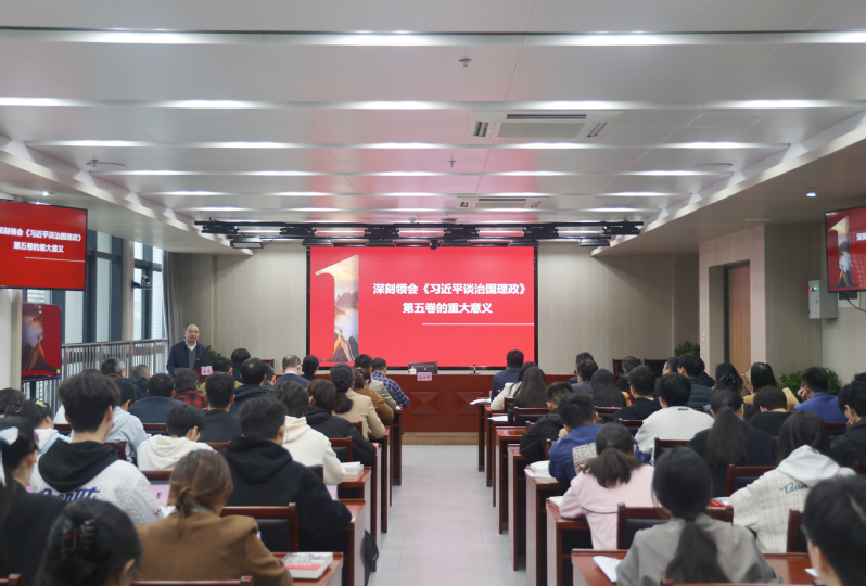 开班第一课上,李方泽为参培学员作了《深学细悟<习近平谈治国理政>第五卷》的专题讲座。他从深刻领悟《习近平谈治国理政》第五卷的重大意义,准确把握其丰富内涵、聚焦掌握其精髓要义,切实践行其根本要求等四个方面为参培学员做了详细的解读。整场报告主题鲜明、内容全面、重点突出、解读透彻,参培学员纷纷表示要在学习和实践中将党的创新理论融入日常,在专业上追求“专精特新”、品质上锻造“勤朴勇毅”,涵养安职学子优良学风,推动高水平职业大学建设,将安职大梦融入中国梦,以实际行动推动中国式现代化建设。