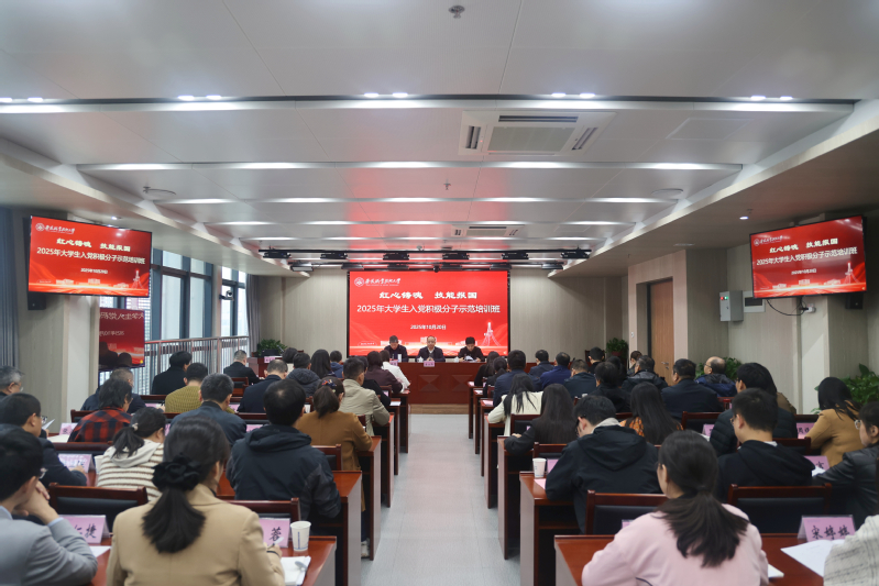 本网讯(党委组织部)为深入贯彻落实新时代党的建设总要求,提高党员发展质量,引导广大青年学子系好政治人生“第一粒扣子”,10月20日下午,学校“红心铸魂 技能报国”2025年度入党积极分子示范培训班开班。省委教育工委组干处负责同志到会指导,相关高校党委组织部负责同志现场观摩开班式。学校党委负责人李方泽出席开班式并作动员讲话,开班式由校领导杨林国主持。