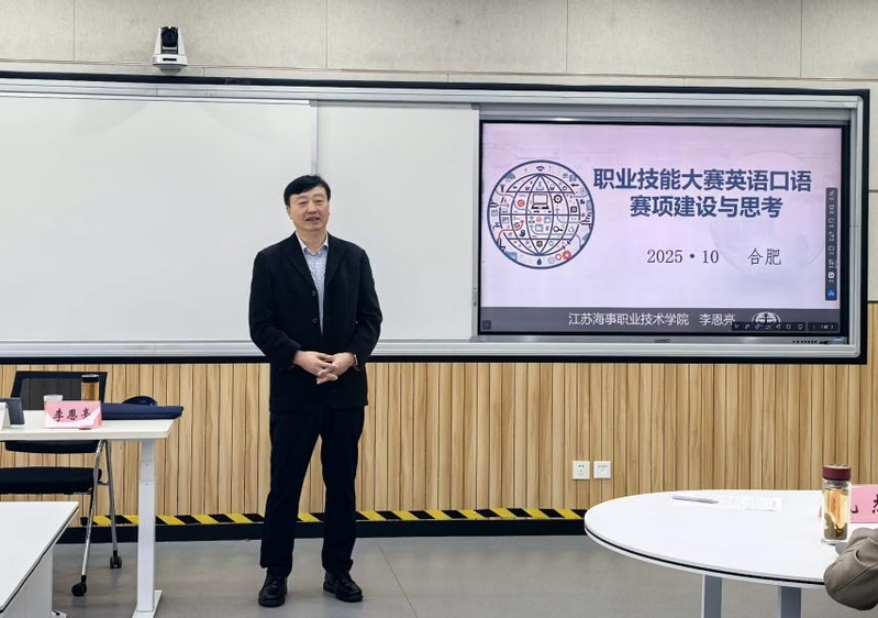 10月24日,外国语学院举办世界职业院校技能大赛——教育与体育赛道英语口语赛项专题讲座。特邀江苏省高等学校外国语教学研究会高职分会会长、江苏海事职业技术学院教授李恩亮进行分享,其多次担任世界职业院校技能大赛英语口语赛项评委。会议由外国语学院院长胡菁蕾主持,外国语学院全体专职教师及参赛学生参与学习交流。