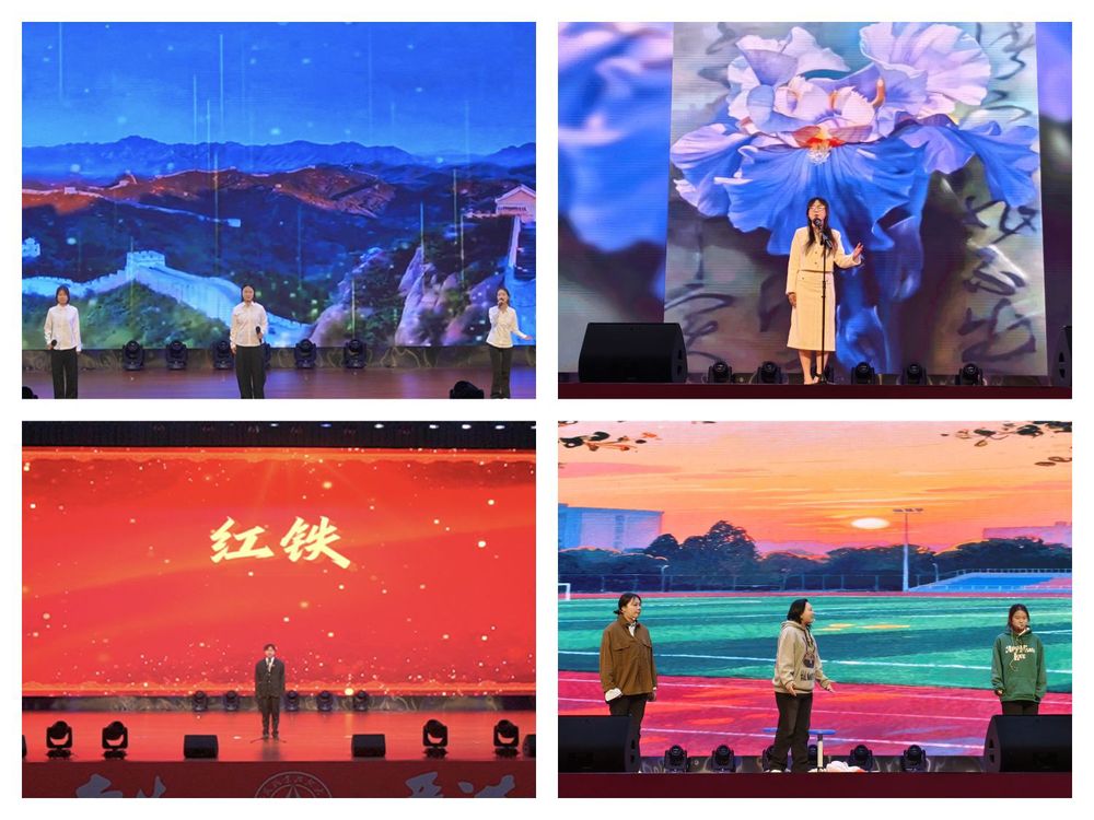 语言类作品成为本次大赛的亮点。袁紫钰、赵子彤、冯喆言带来的《橘子后的难言》细腻动人;孟锦华、耿盼盼演绎的《1978年的早冬》带领观众回溯历史瞬间;周政贤的《红铁》充满力量与信念;李璐、章玉、刘锦雯的集体朗诵《月光下的中国》则饱含深情,表达了对祖国的赤子之爱。朱乐的朗诵作品《会唱歌的鸢尾花》情感真挚,尤为动人。