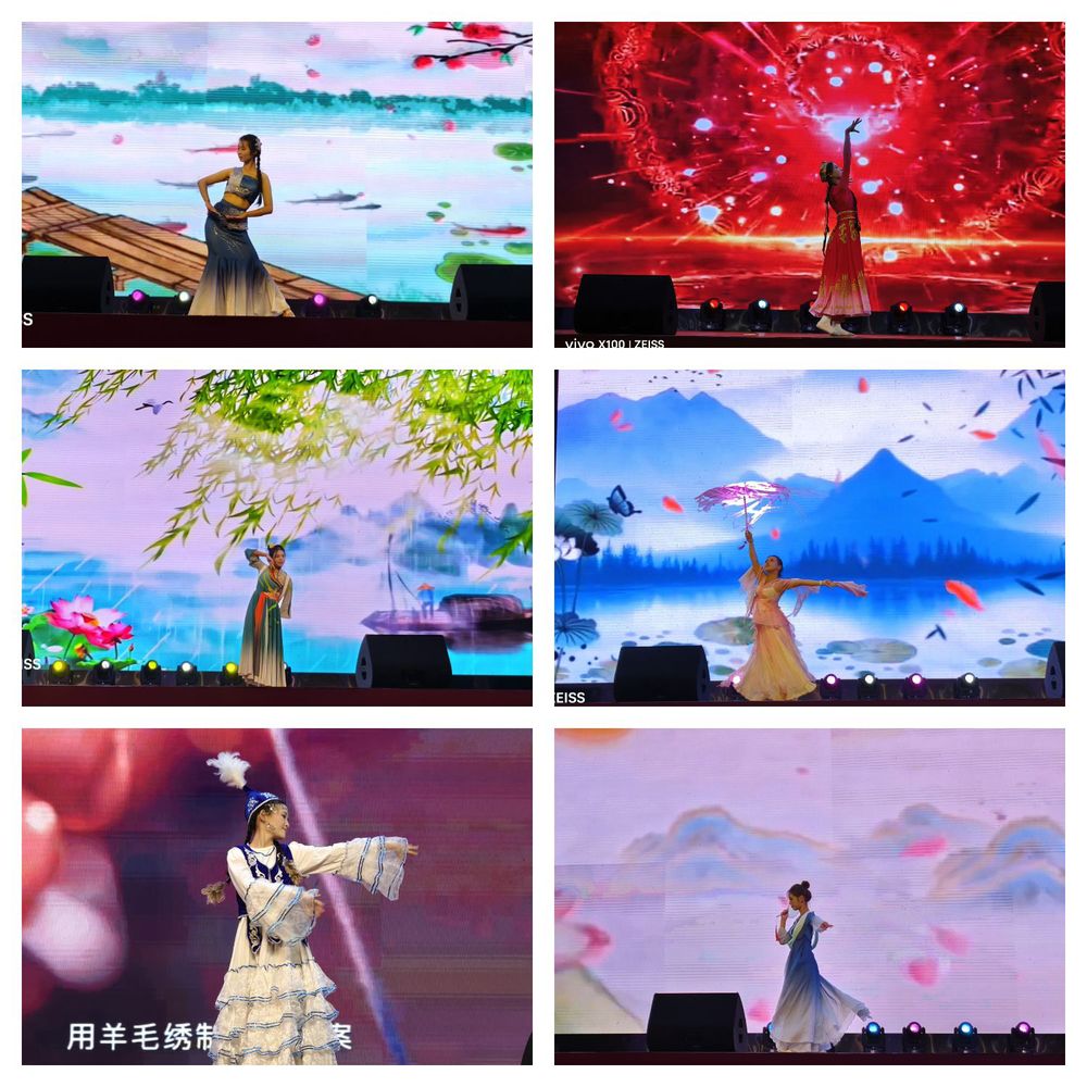 舞蹈类节目为现场带来一场视觉的享受。杨雨鑫的《锦瑟》以柔美舞姿诠释古典诗词的韵味,王楠的《采菊东篱下》再现了隐逸闲适的田园意境,李鑫颖的《红马》充满故事感,邾敏的《春风》灵动曼妙,而唐努尔的《新疆哈萨克舞蹈串烧》则以热情奔放的节奏,展现了浓郁的民族风情,将现场气氛推向高潮。
