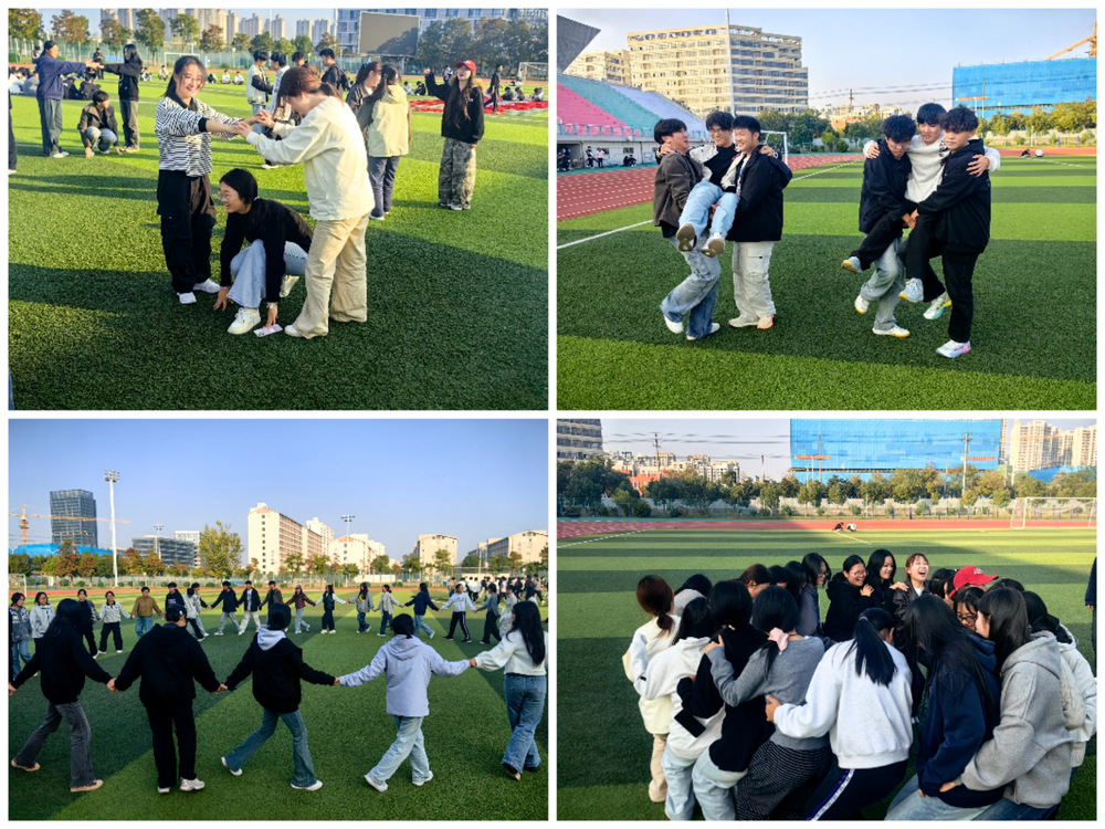 活动在充满趣味的“松鼠搬家”游戏中拉开帷幕,同学们化身一只只机灵的小松鼠,伴随着老师口令的不断变化,现场变成了一片欢乐的海洋。“珠行万里”更是将合作精神体现的淋漓尽致,每一次的顺利传送都引来一阵欢呼,每一次小小的失误都伴随着善意的鼓励和迅速调整。“这比作平一个账目难多啦,但我们团队配合超级默契!”同学们兴奋地讲到,脸上都洋溢着成就感。最精彩的要数“信任人椅”活动,所有成员围成一个紧密的圆圈,大家调整姿势、相互支撑,信任的力量在团队中无声的流淌、升华。