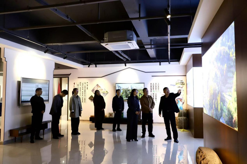 促进会品牌运营中心主任尤元帅带领考察组一行实地参观了安徽省乡村振兴馆的产业、人才、文化、生态、组织五大展厅,结合馆内3D水墨背景、徽派建筑元素及特色农产品陈列,详细介绍了促进会推动乡村振兴的实践理念与丰硕成果。