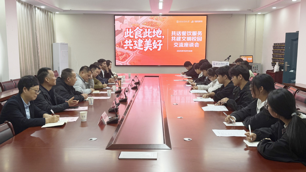 为推动校园餐饮服务提质增效,贯彻“文明用餐在食堂”的学风理念,10月30日下午,轨道交通学院联合后勤管理处在至兴楼N816会议室召开“此‘食’此地,共建美好”食堂餐饮服务交流座谈会。后勤管理处副处长丁琦、轨道交通学院党政班子成员、团总支负责人、食堂经理及师生代表参会,围绕食堂菜品、价格、服务与环境等议题展开交流,共话餐饮服务优化路径,共建文明校园餐饮新风。