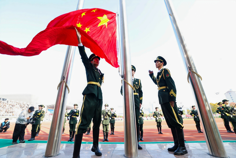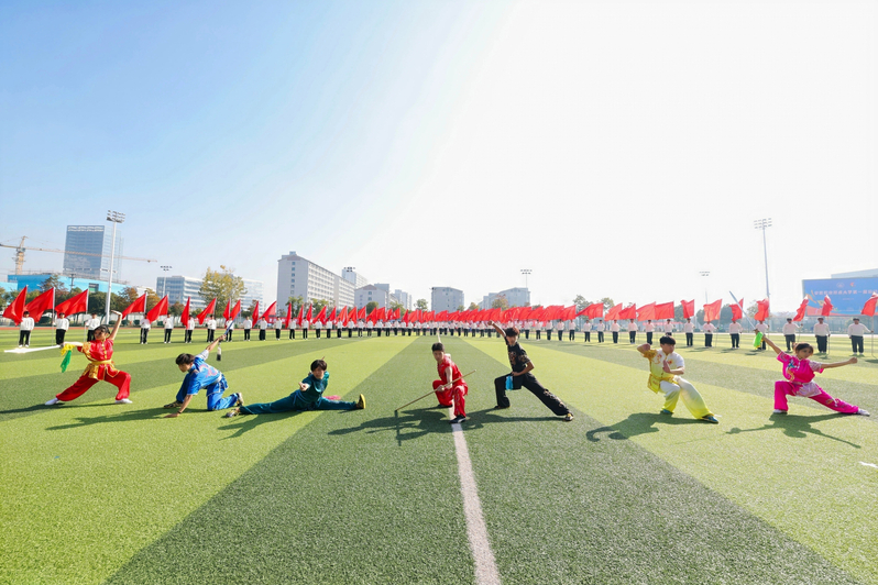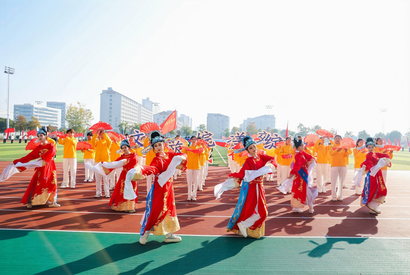运动员与裁判员代表先后宣誓,誓言铿锵,承诺以公正之心守护赛场纯粹。广播操比赛气势如虹,尽显青春律动;《旗武飞扬》表演刚劲豪迈,彰显力量之美;啦啦操《我和我的祖国》则以动人舞姿告白祖国,为开幕式画上圆满句号,也为赛事征程拉开精彩序幕。