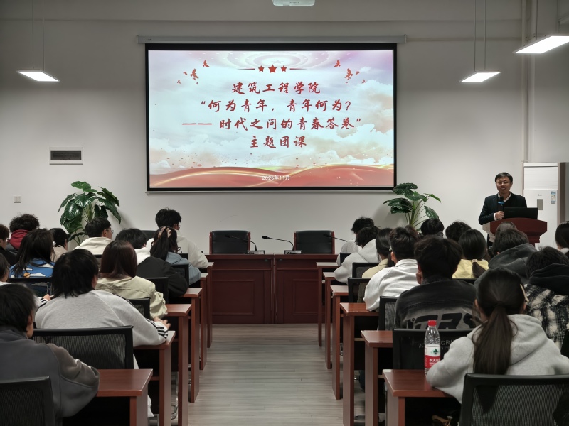 为深入贯彻落实习近平总书记关于青年工作的重要思想,引导团学骨干明确时代使命与青春责任,同时为即将到来的安徽职业技术大学第一届运动会凝聚团队力量、做好筹备动员,11月4日,建筑工程学院团总支在至真楼中212会议室开展“何为青年,青年何为——时代之问的青春答卷”主题团课。本次团课由学院团总支书记孟飞龙担任主讲,全体团学骨干以及各班级运动项目负责人,共计90余人参加了此次团课。
