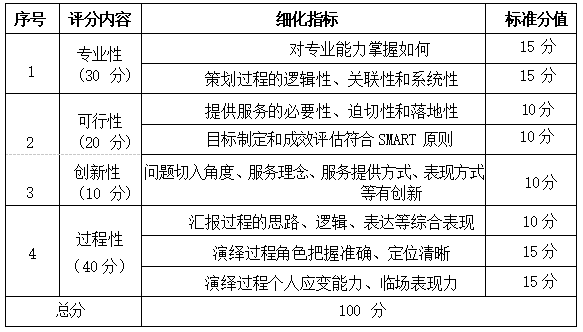 竞赛形式:采用“封闭策划+面试汇报+小组情景演绎”结合的形式,核心测试学生的专业素养、活动策划能力、沟通表达能力、情境应变能力、团队协作能力及知识理论的落地应用能力,全程由参赛选手独立完成相关环节(情景模拟为小组协作但单独评分),指导老师不得干预。