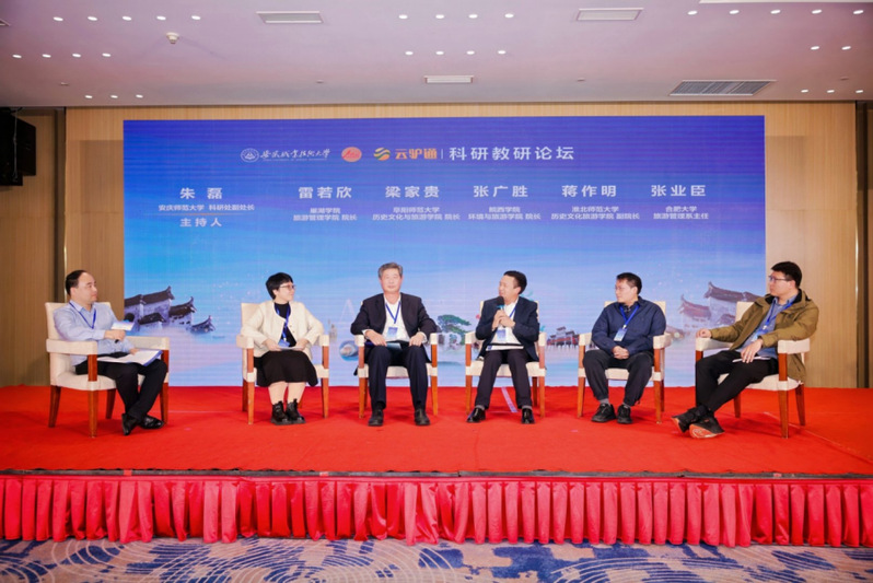省文化和旅游厅党组成员蔡小莉,安徽职业技术大学行政主要负责人盛鹏,省教育厅职成教处处长饶庆眉,省文化和旅游厅科技教育处处长许才文,省文化和旅游厅原二级巡视员、省旅游协会会长汪顶胜,省旅游学会顾问、原省旅游局一级巡视员张雪平,合肥市文化和旅游局局长吴娅娟,省旅游学会会长徐华玉,安徽云驴通信息技术有限公司董事长阮成友等领导,与近50所高校的120余名专家学者及文旅业界代表齐聚一堂,围绕 “创新驱动、协同发展——赋能安徽文旅产教融合新生态”主题共话发展。开幕式由校领导胡辉平主持。