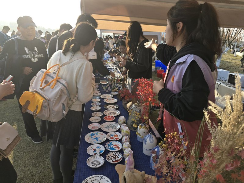 在国潮非遗市集现场,志愿者们以“青春代言人”的身份,生动传递着传统文化的魅力。他们身着统一服装,穿梭于油扇、扎染、陶艺等体验区域,不仅维护现场秩序,更耐心协助每位参与者动手制作,在实践中实现“服务他人、提升自我、传播文化”的多重价值。与此同时,志愿者们也主动探寻非遗项目背后的历史故事与工匠精神,悄然成为连接传统技艺与现代生活的情感桥梁。