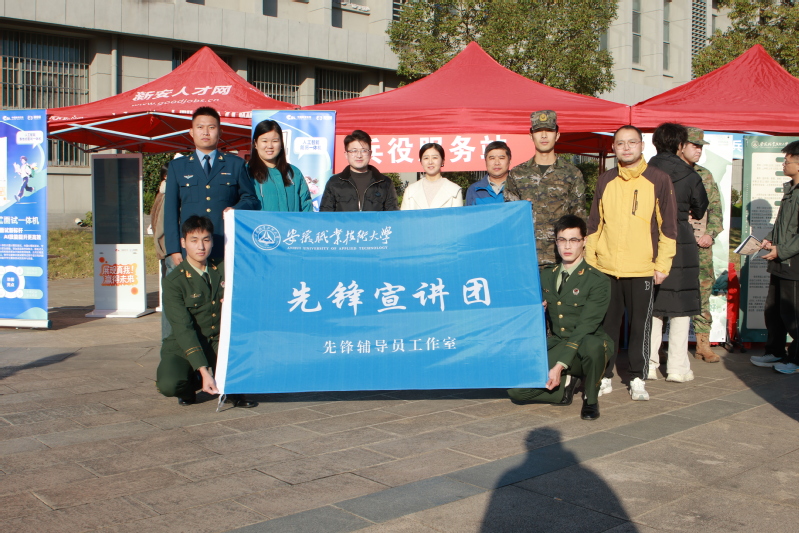 11月19日下午,“人才兴皖‘就'在江淮”校园招聘会在我校风华广场举行。智能制造学院“先锋”辅导员工作室组织“先锋宣讲团”成员,联合学生处征兵办共同设立征兵咨询服务台,为前来求职的学子提供全方位、精细化的征兵政策解读服务,成为招聘会现场一道独具意义的“国防风景线”。