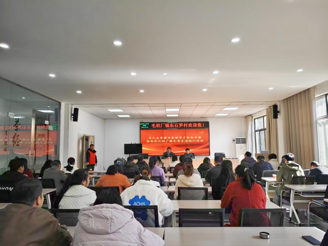 为深入贯彻落实党的二十届四中全会对“加快农业农村现代化,扎实推进乡村全面振兴”重大部署精神,积极响应学校助力乡村振兴号召,发挥高校专业优势服务地方发展,11月21日,受安徽省人力资源和社会保障厅委托,现代商务学院院长杜淑琳带领骨干教师范大凤、徐倩,赴六安市毛坦厂镇东石笋村,参加省人社厅组织的以“党建共建与电商赋能”为核心的乡村振兴活动。活动围绕专题培训、实地调研与座谈交流展开,旨在通过党建引领与全媒体电商运营技术,为乡村发展注入新动力。东石笋村驻村工作队第一书记、队长孟剑光和村支部书记汪昌华对学院一行的到来表示热烈欢迎。