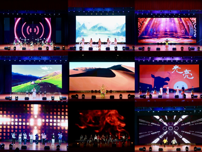 灯光璀璨,舞影翩跹。各参赛队伍依次登台,以饱满的情感、默契的配合与专业的演绎,将每支舞蹈的意蕴诠释得淋漓尽致。舞台上,《流水桃花》《迦陵频伽》等作品以柔美身姿勾勒古典诗情、再现敦煌神韵;《初耀星芒》《加油加油!》等现代舞与啦啦操热情洋溢,迸发青春活力;《美丽新疆》《马踏春风》则以浓郁的民族风情,展现多元文化的动人魅力。整场演出高潮迭起,掌声与喝彩声此起彼伏。