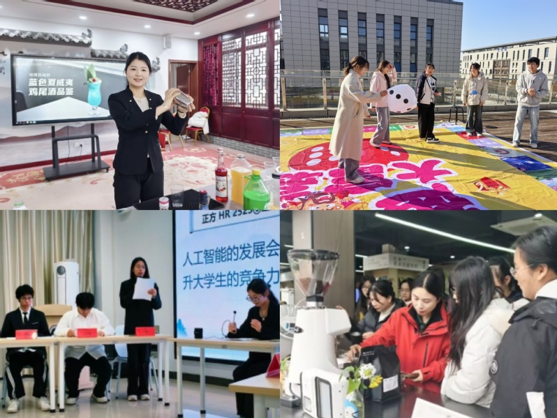 聚焦专业技能与综合素养提升,活动打造多领域、多层次的竞技舞台,让青年学子在同台比拼中展现实力、突破自我。文化与旅游学院“地理风味杯”系列竞技,涵盖调酒、咖啡调制、茶艺展示等项目,选手们在实操中比拼专业服务技能,彰显学科特色与育人成效;智慧财经学院 “妙手点钞” 赛场上,选手们指法如飞完成连贯操作,展现扎实的专业基本功;公共管理学院“思辨青春 智汇公管”辩论赛,围绕“人工智能的发展会提升还是会削弱大学生的竞争力”等时代议题展开激辩,选手们逻辑清晰、论据充分,展现出敏锐的思辨能力。