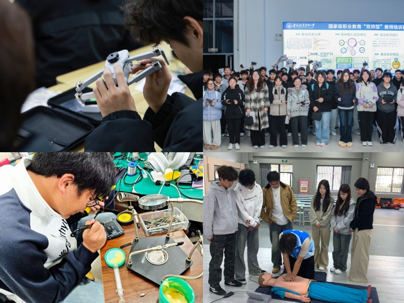 专业实践活动精准对接人才培养需求,有效提升学生实操能力。能源动力与安全学院将安全教育融入实践,组织学生开展心肺复苏等应急救援技能的实操演练,有效提升了学生的安全防范能力;智能制造学院“无人机组装体验营”指导学生完成无人机全流程操作,在近距离接触中强化专业认同。