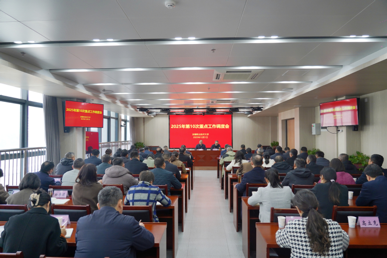 本网讯(办公室)12月1日,学校召开2025年第10次重点工作调度会。学校领导班子,各部门负责人、各二级学院党政负责人参加会议。