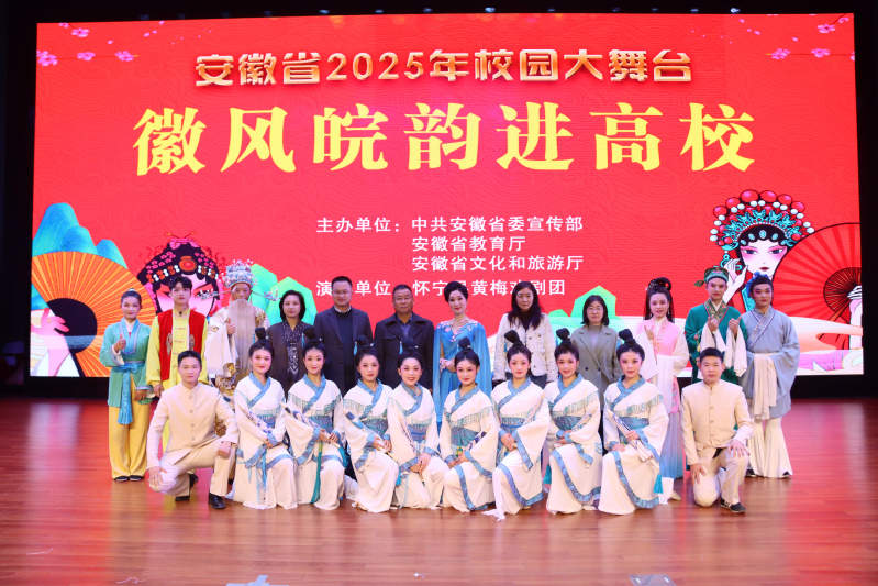 本网讯(团委)12月1日,“2025年校园大舞台——徽风皖韵进高校”安徽职业技术大学折子戏专场黄梅戏演出在至立会堂举行。本次活动由省委宣传部、省教育厅、省文化和旅游厅共同主办,怀宁县黄梅戏剧团与我校联合承办。校领导宣岩松与800余名师生一同沉浸戏曲盛宴,共赏雅韵,共沐徽风。