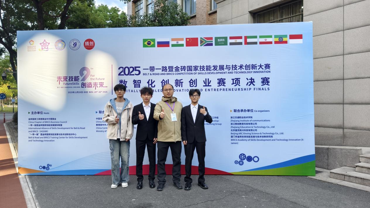 本网讯(现代商务学院)11月29日至30日,2025“一带一路”暨金砖国家技能发展与技术创新大赛“数智化创新创业”赛项(高职组)全国总决赛在浙江交通职业技术学院圆满结束。我校现代商务学院管鸿昌、丁俊洋、侯国栋三位同学组成的参赛团队,从19个省100多所高职院校的120支参赛队伍中脱颖而出,获得全国总决赛二等奖的优异成绩,沈毅获得“优秀指导老师”称号。