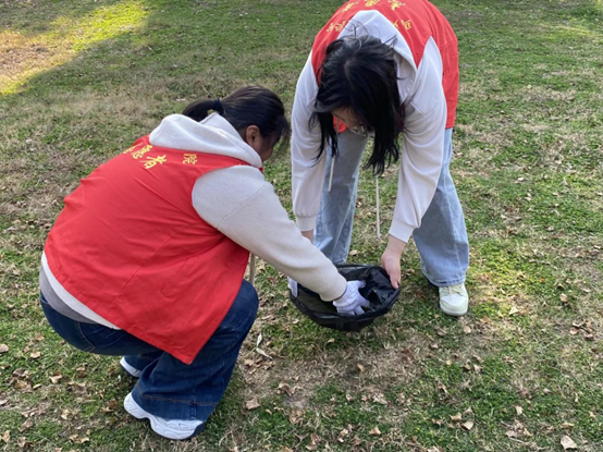 活动当日,全体队员身着统一志愿服装,精神饱满地投入工作。在薪火志愿服务队的组织协调下,团学干部、受资助学生与其他成员分工明确,相互协作,沿着公园步道、草坪及休闲区域,细致清理散落的塑料袋、纸屑等废弃杂物。大家不仅用实际行动让公园变得更加整洁,更在劳动中体悟“劳动最光荣、劳动最崇高”的价值理念,将环保意识化为具体实践。