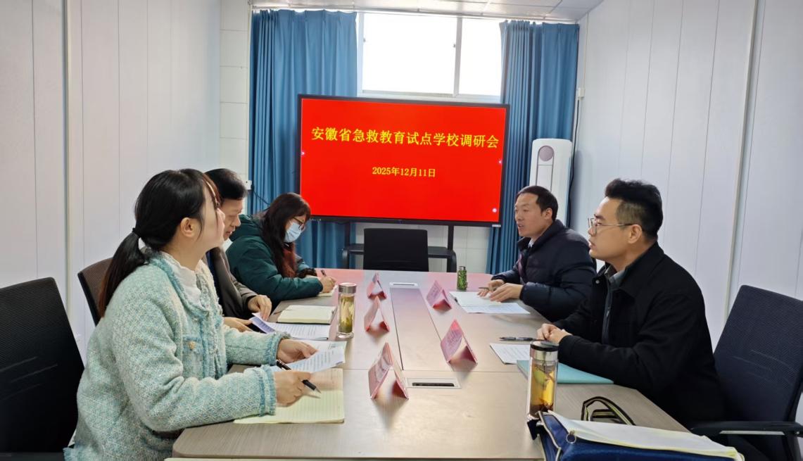 12月11日,受安徽省教育厅委托,安徽医科大学教务处相关人员一行来到我校,针对急救教育试点工作开展专题调研。此次调研的目的在于交流急救教育经验、探讨合作契机,以及深入了解我校自获批成为全国急救教育试点学校以来所取得的成果与创新实践。调研团队实地参观了我校急救教育培训基地,并与我校举行了座谈交流会。双方围绕急救教育体系建设、师资培训、设施设备以及未来规划等方面展开了深入研讨。