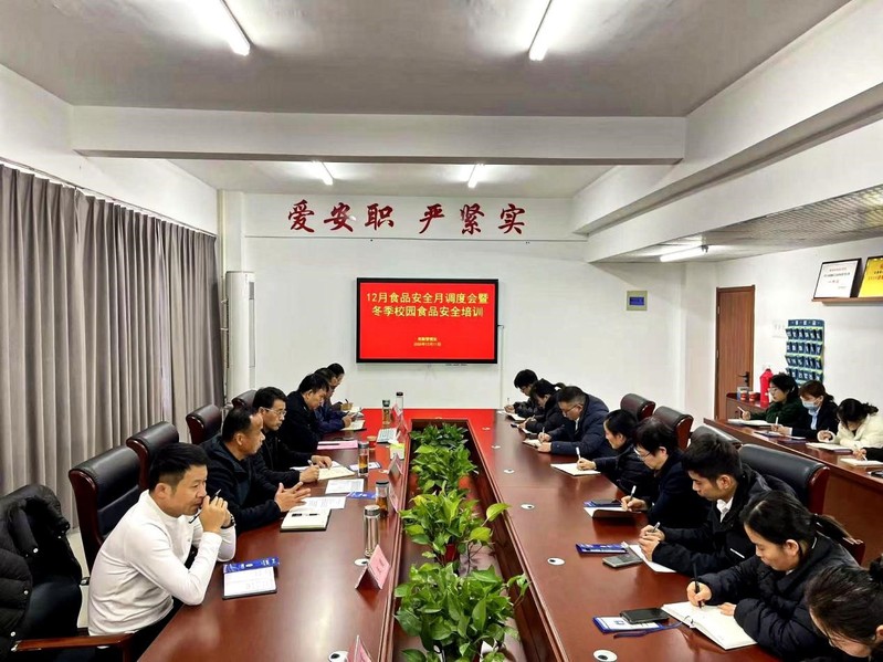 为深入贯彻落实校园食品安全管理制度,进一步夯实食品安全主体责任,12月12日,学校组织召开校园食品安全工作月调度会暨冬季学期食品安全知识讲座。学校食品安全总监胡坤、后勤管理处相关负责人、各食堂驻校经理、食安专员及各超市负责人参加会议,新站区市场监督管理局磨店监管所所长刘军到会指导,会议由后勤管理处负责人主持。