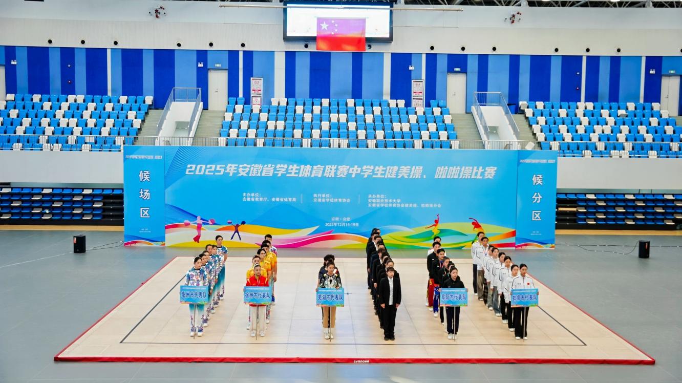 12月16日,2025年安徽省学生体育联赛中学生健美操比赛开幕式在学校至高体育馆举行。本次赛事由安徽省教育厅、安徽省体育局、安徽省学校体育协会共同指导,安徽职业技术大学承办,旨在贯彻落实体教融合政策,推动学校体育事业发展,提升青少年体质健康水平。开幕式由体育健康学院行政负责人高立克主持。