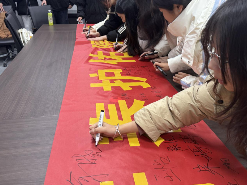 最后,全体马克思主义学院学生在横幅上签名。在一笔一划间,不仅承载着青年学子对科学防疫理念的认同与坚守,更凝聚着大家携手共筑校园安全防线、践行社会责任担当的坚定决心。