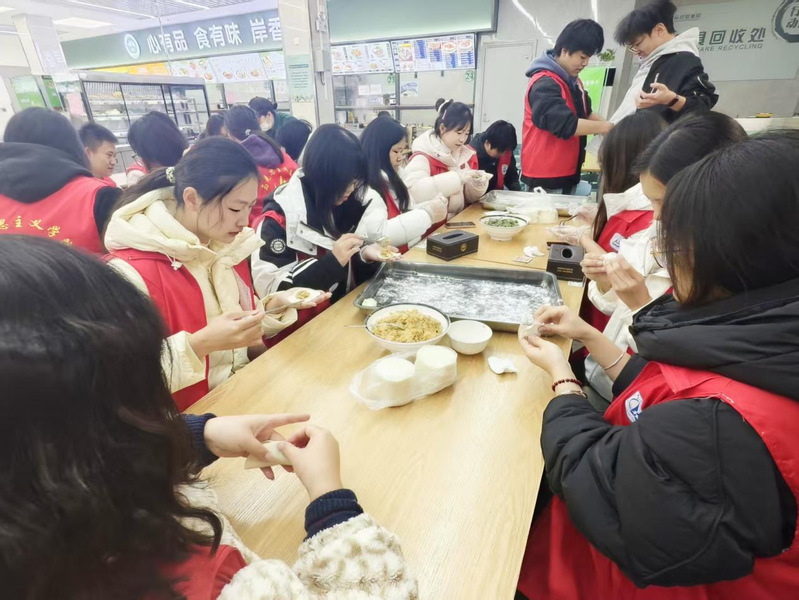 为传承中华优秀传统文化,丰富校园文化生活,在12月21日冬至当天,马克思主义学院于校园东区一楼食堂开展以“饺香氤氲岸香处,马院温情满冬至”为主题的冬至包饺子志愿活动,同学们积极参与,在欢声笑语中体验传统习俗,感受冬至的温暖与浓厚的节日氛围。