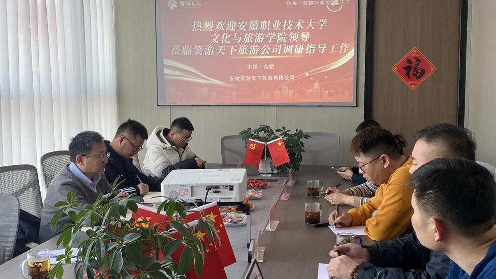 此次调研走访,不仅加深了文化与旅游学院与安徽笑游天下旅游有限公司的相互了解,更为双方今后在多层次、多领域的合作奠定了坚实基础。下一步,学院将继续加大“访企拓岗”力度,持续整合优质社会资源,全力助推毕业生高质量充分就业,服务区域文旅产业发展。(图文/李丽丽)