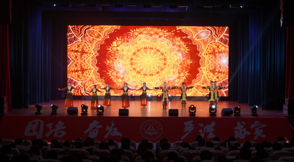 晚会在开场舞蹈《赞歌唱祖国》中拉开帷幕。整齐的舞步跳出赤子之心,饱满的热情礼赞伟大祖国,瞬间点燃了全场气氛,充分彰显了青年学子浓厚的家国情怀与青春风采。随后,四位主持人闪亮登场,向参加晚会的领导嘉宾致以热烈欢迎,向全体师生送上新年祝福,并宣布晚会正式开始。