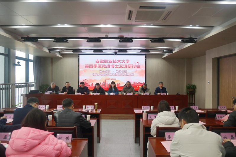 本网讯(科研处)12月25日,学校召开2025年第四季度教授博士交流研讨会。本次研讨会以“融合聚变・融汇创新——横向科研服务区域经济高质量发展”为核心主题,共话横向科研提质路径,共商产教融合深化举措,为学校高质量发展注入强劲科研动能。校领导杨林国、胡辉平出席会议,安徽省教育科学研究院职教研究所副所长段红教授,合肥职业技术学院党委委员、副校长范家茂教授,安徽财贸职业学院党委委员、副校长王海龙教授,安徽财经大学新徽商研究中心主任、安徽江南徽商研究院院长王唤明研究员,安徽精蓝科技服务公司总经理、省级产业教授龚环环等5位校外专家受邀担任评审点评嘉宾。学校有关部门负责人、各二级学院负责人、教授代表、博士代表、教研室正副主任代表及中青年教师代表参会。会议由科研处负责人主持。