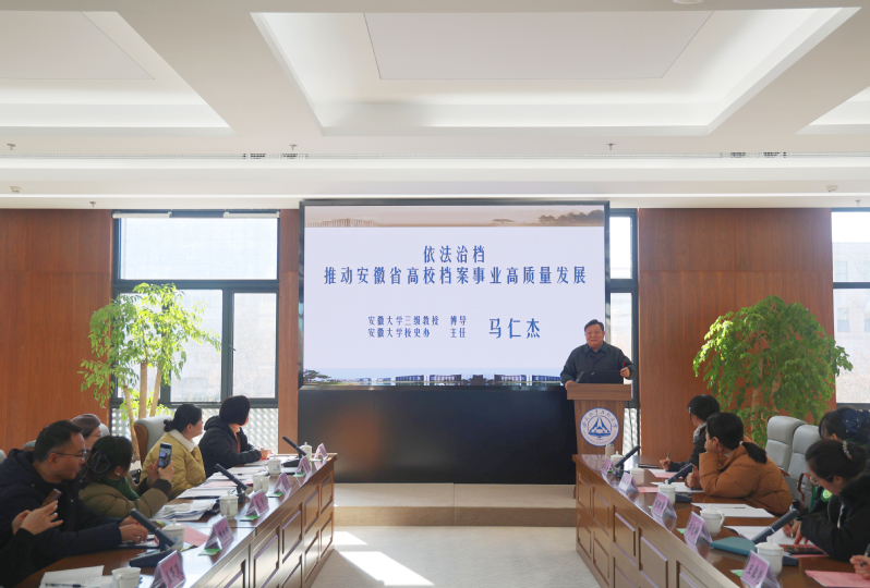 本次会议还特邀安徽大学校史办主任、档案学专家马仁杰教授作了以《依法治档,推动安徽省高校档案事业高质量发展》为题的讲座。马教授结合实例,深入浅出地阐述了依法治档的核心要义与实践路径,为与会人员提供了宝贵的理论指导和业务借鉴。