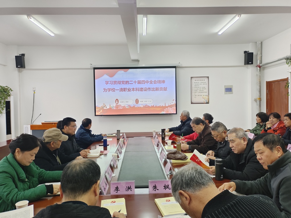 加强理论学习提高政治素养。离退休党总支书记作《学习贯彻党的二十届四中全会精神 为学校一流职业本科建设做出新贡献》专题党课,党课围绕学习贯彻党的二十届四中全会精神,聚焦“十五五”规划部署,明确职业教育使命与方向和服务推动学校高质量发展为建设教育强国贡献安职力量等方面进行了深入的宣讲。党课强调,离退休党建工作要坚持“一融双高”理念,把党的政治优势、组织优势转化为发展优势,推动学校党委的部署落地见效,做到“四个融入”:即融入学校事业发展的星辰大海、融入学校“十五五”事业发展目标、融入“六位一体”校园文化、融入同心同德爱校荣校的内心情怀。