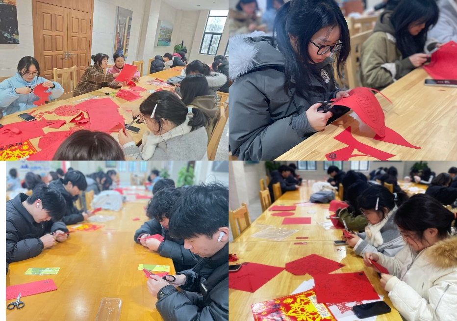 同步的非遗体验活动更是将氛围推向高潮。活动现场划分“脸谱绘制区”与“剪纸体验区”。在脸谱绘制区,老师与同学们手持画笔,或勾勒眉眼轮廓,或调配经典配色,从“关羽”的红脸忠义到“包拯”的黑脸刚正,一个个鲜活的脸谱形象在笔下逐渐成型;剪纸体验区里,红纸与剪刀在指尖流转,从简单的“福”字、窗花,到灵动的十二生肖与花鸟图案,参与者们耐心裁剪,不时互相分享创作心得,现场满是纸张翻动的轻响与欢声笑语。