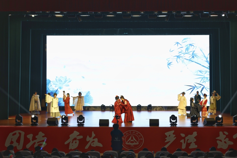 第二篇章“泠泠弦歌·艺彩绽放”融合多元艺术形式。心理情景剧《新年愿望便利店》贴近学生生活,传递健康心态;新疆舞《舞动新闻》展现了独特的民族风情;国风走秀《春和礼韵》则以华服之美彰显了深厚的文化自信,赢得现场阵阵掌声。