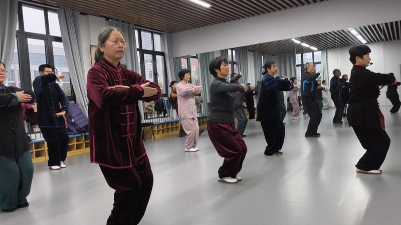 健身气功与健身太极班的学员们列队整齐,动作刚柔并济、行云流水,在呼吸吐纳间调和身心,展现出传统养生文化的独特魅力。