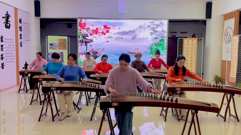 古筝班内弦音悠扬,学员们指尖轻拨,从生疏的单音到流畅的乐曲,将《茉莉花》《渔舟唱晚》等经典曲目演绎得婉转悦耳。