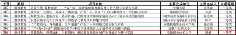 本网讯(教务处)近日,安徽省教育厅正式公布2025年省级教学成果奖评选结果,我校凭借创新成果荣获两项一等奖,其中本科教育成果《贯通·融合·赋能:“中高本贯通”培养应用型本科人才的创新与实践》斩获一等奖,继续教育成果《党建领航、应需适配、全程固控:继续教育赋能区域产业发展的创新与实践》荣获一等奖。此次获奖标志着我校在教育教学改革、产教融合及服务地方经济能力上迈上新台阶。