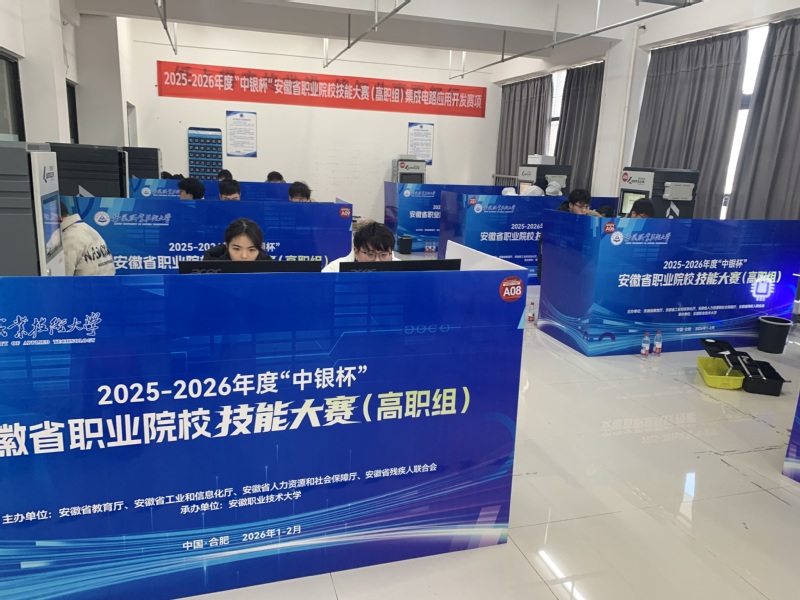 2月2日,2025-2026年度“中银杯”安徽省职业院校技能大赛“集成电路应用开发”赛项在我院正式拉开帷幕。此次承办工作,学校领导高度重视,上级主管部门全程悉心指导,为赛事平稳有序开展提供了坚强保障与有力支撑。