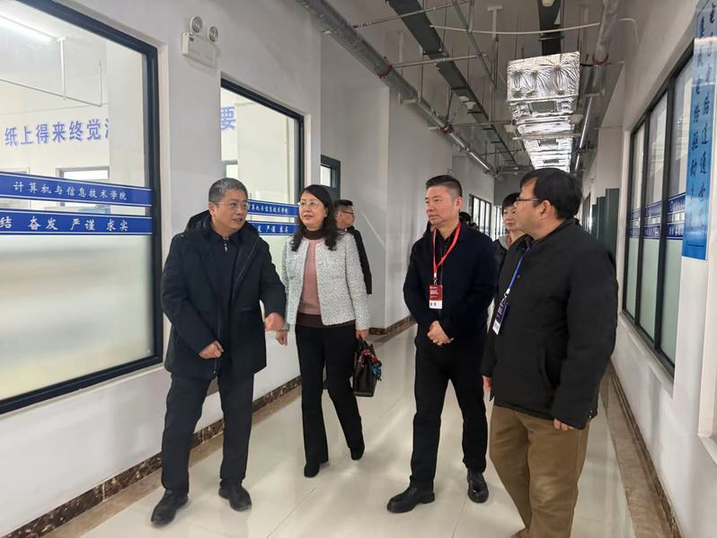 安徽省教育厅职成处处长饶庆眉、中国银行安徽省分行领导王宏军一行到校指导, 校党委书记李庆宏带队相关职能部门负责人陪同。他们先后走访了技能测试主场地、现场汇报展示区和裁判工作室,实地察看比赛环境与组织工作,详细了解竞赛流程、技术保障及选手表现情况,对赛事的有序开展和学院的承办工作给予了充分肯定,并表示此类高水平技能竞赛对推动专业建设、促进技术技能人才培养具有重要意义。