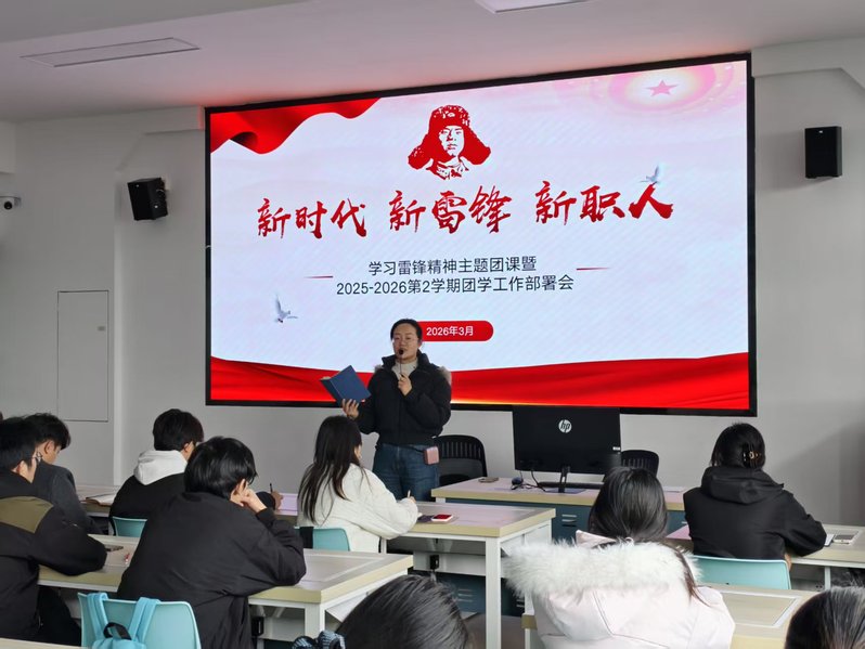 会上,丁润青以“雷锋精神与青年成长”为题讲授团课。课程从重温雷锋生平事迹切入,引导同学们感悟榜样力量,进一步理解雷锋精神的形成脉络与时代价值。结合21世纪弘扬雷锋精神的要求,团课重点解读了忠心向党、爱岗敬业两大核心内涵,指出敬业精神与职业教育理念的内在统一,是职业教育学生成长成才的重要基石。围绕青年成长方向,会议还组织学习了教育部关于深化职业教育教学改革的相关意见,帮助同学们立足专业、明确目标,将雷锋精神融入日常学习和未来职业发展。