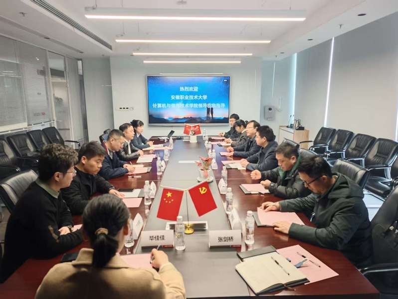 3月19日上午,计算机与信息技术学院副院长胡继胜率队前往高新区海康威视安徽业务中心(以下简称“海康威视”)、科大国盾量子技术股份有限公司(以下简称“国盾量子”)开展校企合作洽谈与访企拓岗活动,学院副院长黄如兵、相关教研室负责人、专业老师参加活动。长三角(安徽)新一代CPS信息技术产教融合共同体秘书长余宝峰、海康威视安徽业务中心教育行业总监王硕、科大国盾量子科技股份有限公司教学产品部经理唐浩热情接待了胡继胜一行。