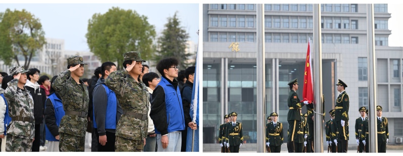 迎着清晨的朝阳,国旗护卫队迈着铿锵有力、整齐划一的步伐,护卫着五星红旗庄严入场。在雄壮激昂的《义勇军进行曲》中,鲜艳的五星红旗冉冉升起,全体师生庄严肃立,面向国旗行注目礼,退役军人学生代表行军礼,以最庄重的姿态表达对祖国的无限热爱与崇高敬意。