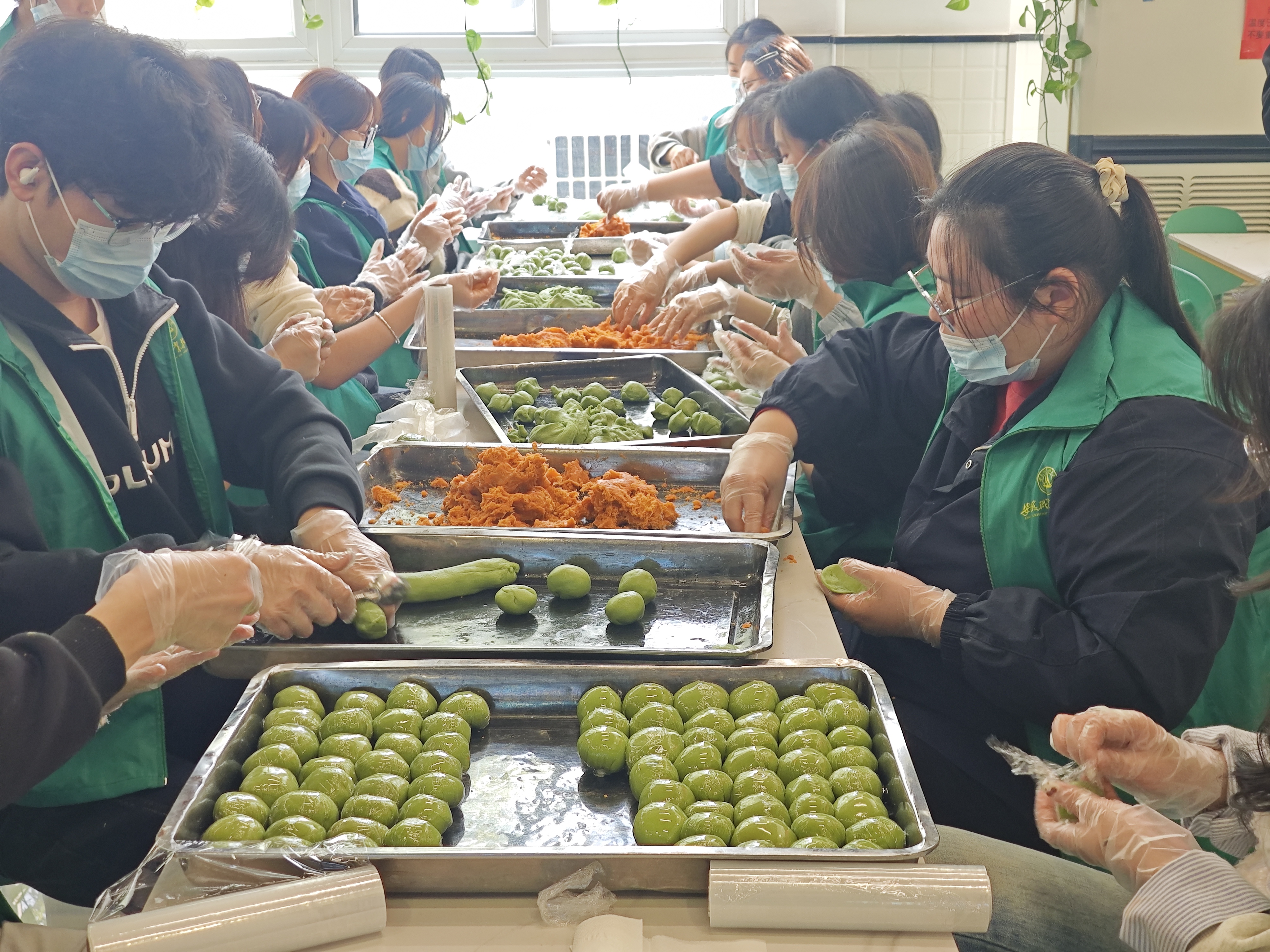 艾草青青,糯米柔柔。“新青年”志愿服务队,依托食品专业特色,亲手制作青团,在劳动实践中体验“指尖下的食俗”。指尖翻飞间,从面团揉和到馅料包裹,一枚枚圆润饱满、带着淡淡艾香的青团陆续成型,既有传统工艺的韵味,也藏着青春的创意。指尖的温度,揉进了糯米的软糯,不仅是舌尖上的春味,更是食俗文脉的延续,成为可触、可尝、可感的文化记忆。