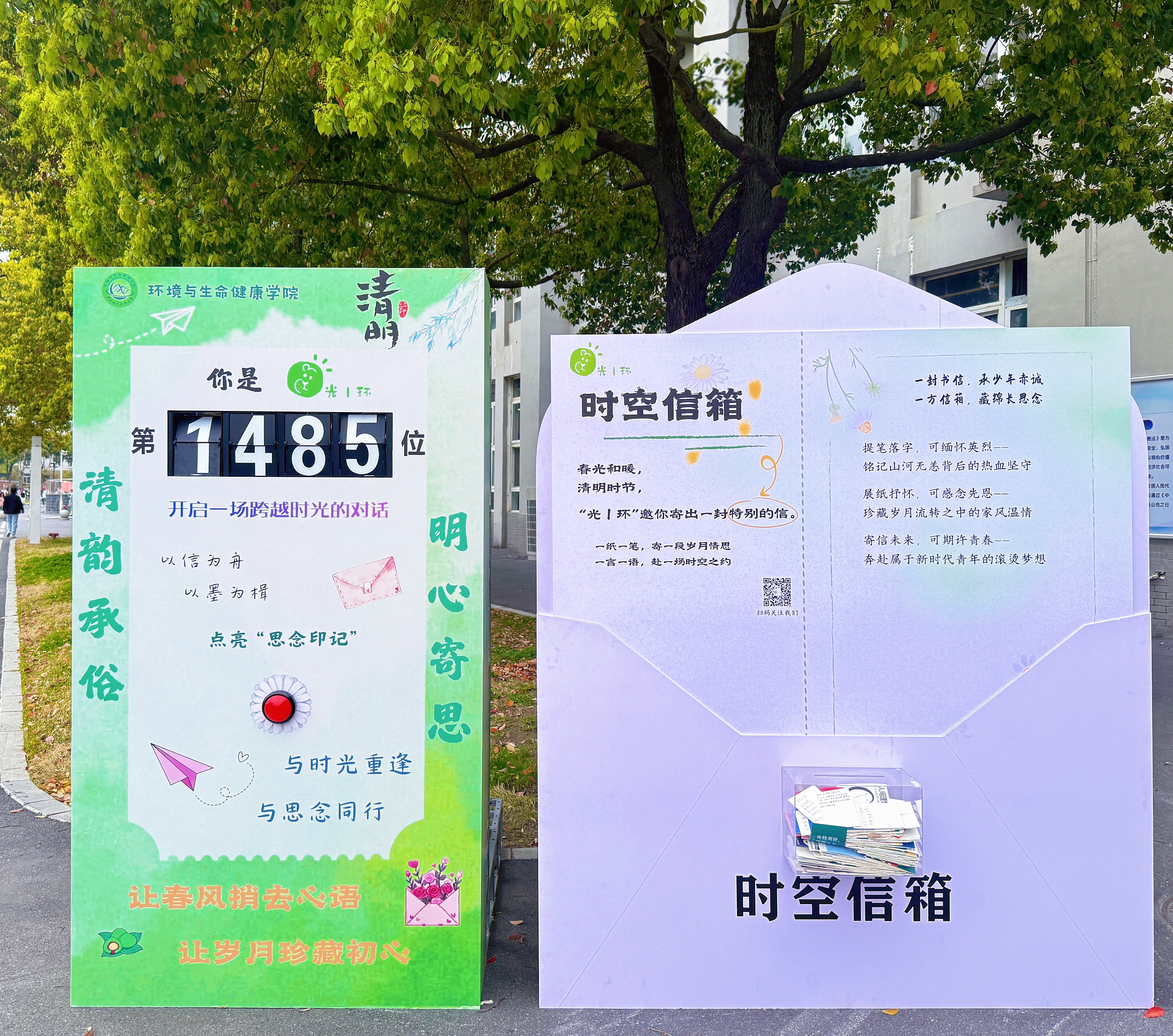 春风袅袅,笔墨深深。“光丨环”设置时空信箱,成为师生们寄托情思的专属角落,素笺铺展,提笔落字,投递“跨时空的思念”。或致敬革命英烈,表达心中的崇敬与感恩;或感念先辈亲人,诉说心底的思念与牵挂;或书写春日期许,寄语未来的自己与家国。每一张明信片都承载着最真挚的心意,让思念在字里行间重逢,让味觉与情感温暖相遇,定格这份清明记忆。