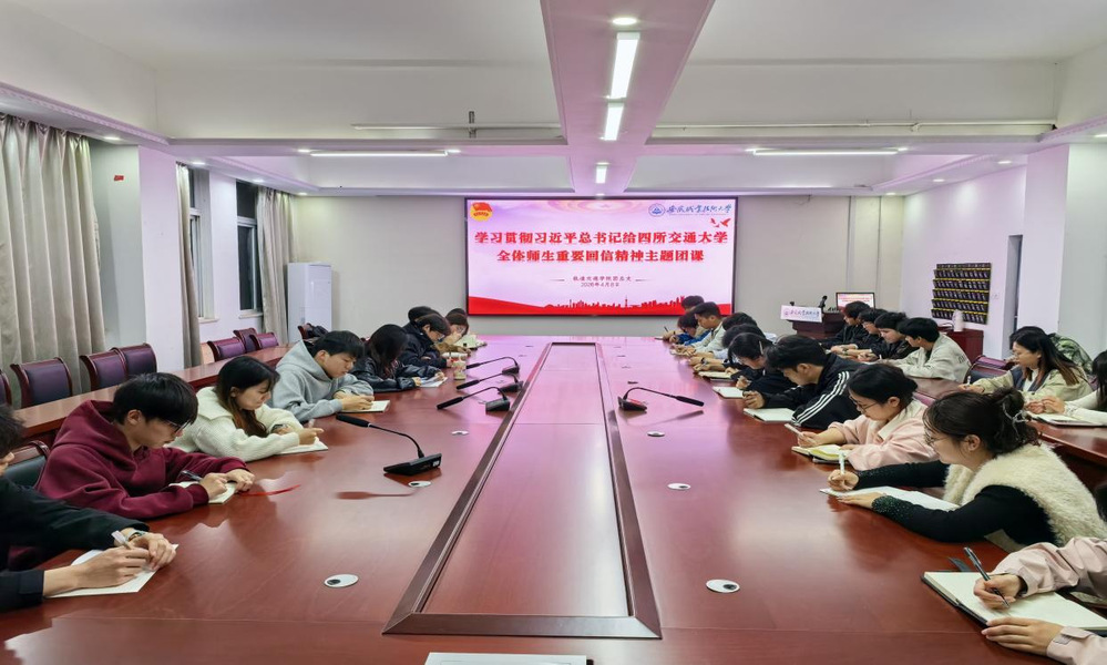 4月8日晚,轨道交通学院团总支在至兴楼816会议室召开专题团课,深入学习贯彻习近平总书记给上海交通大学、西安交通大学、西南交通大学、北京交通大学全体师生回信精神。24、25各班级团支部书记参加会议,团总支书记李萌萌主持会议并领学。