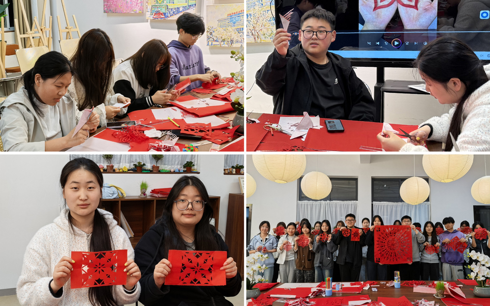 活动分为主题解读、爱国微宣讲、技法示范、创作实践、作品展示五个环节。主持人张盟老师围绕“家国情怀”与“感恩意识”引导同学们感悟初心;接着演示折纸、构图、运剪等技法;同学们以剪刀为笔、红纸为卷,围绕爱国主题展开创作;最后展示作品并分享感悟。